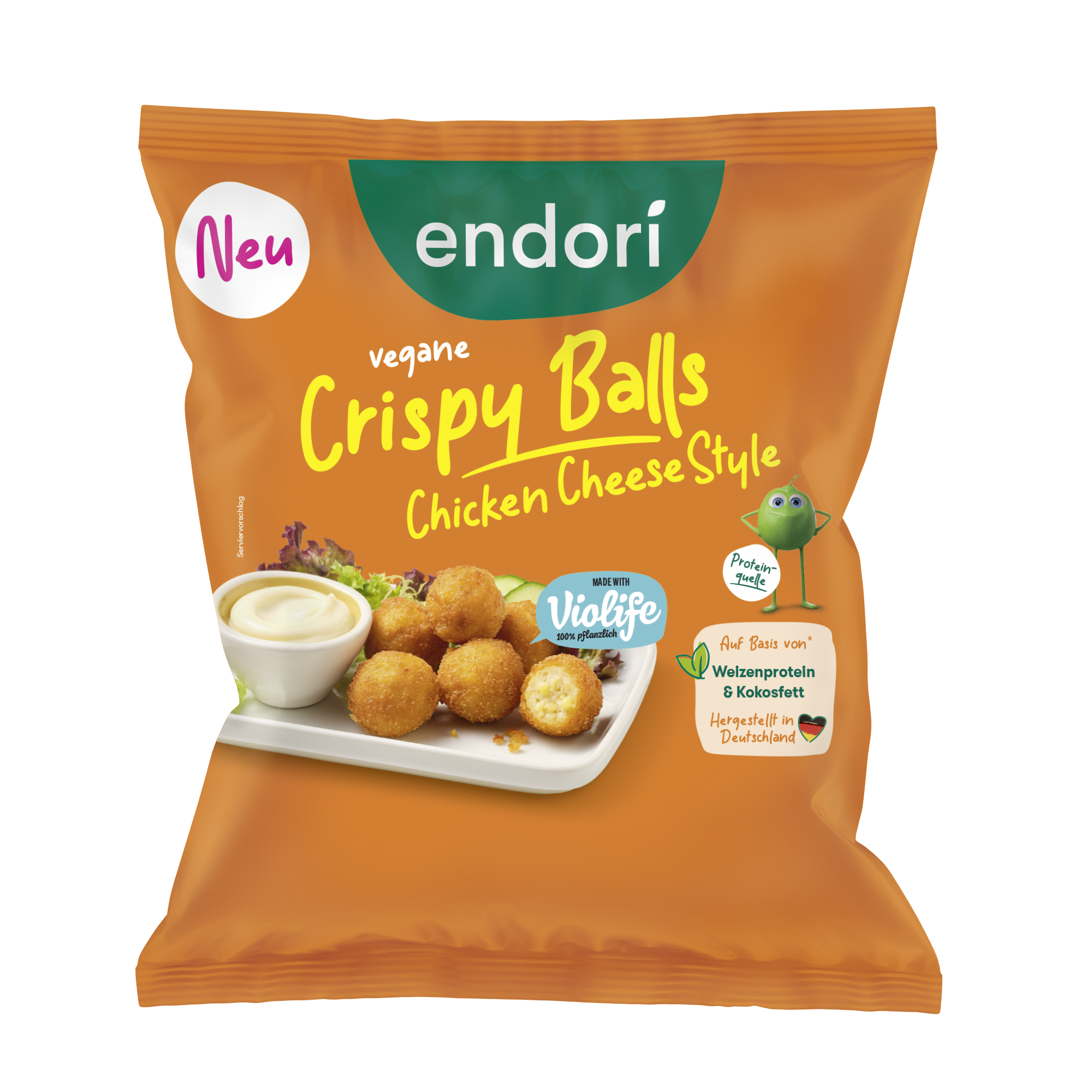 Innovativ und einzigartig: endori Chicken sorgt für Biss, die Käsealternative von Violife für cremigen Schmelz - umhüllt in einer knusprigen Panade